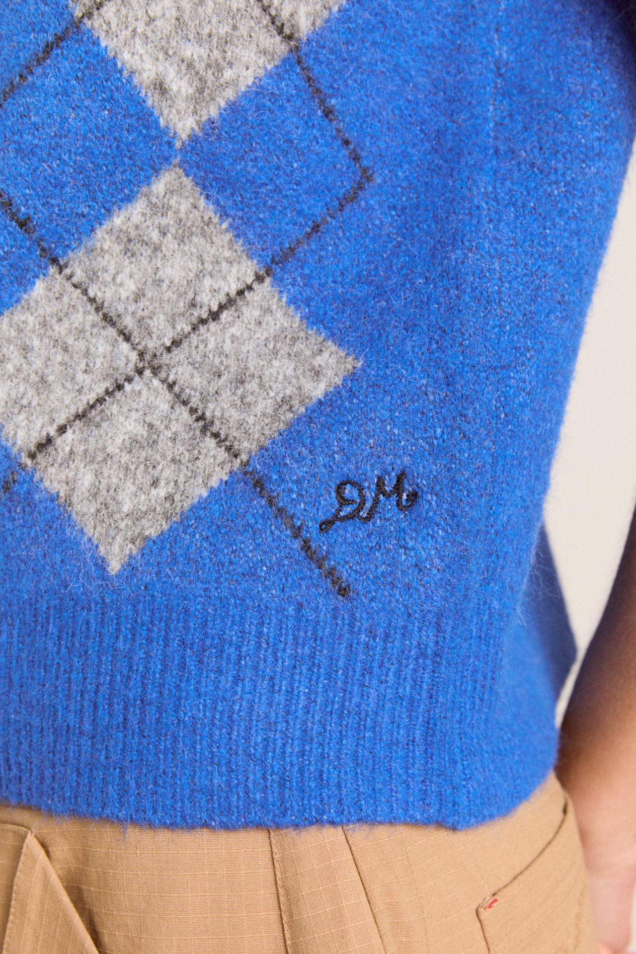 Sure to command attention, the Aggie Knitted Vest in argyle features branded buttons and our signature DM embroidered logo. Designed to be layered or worn on its own, the Aggie will carry you from season to season.