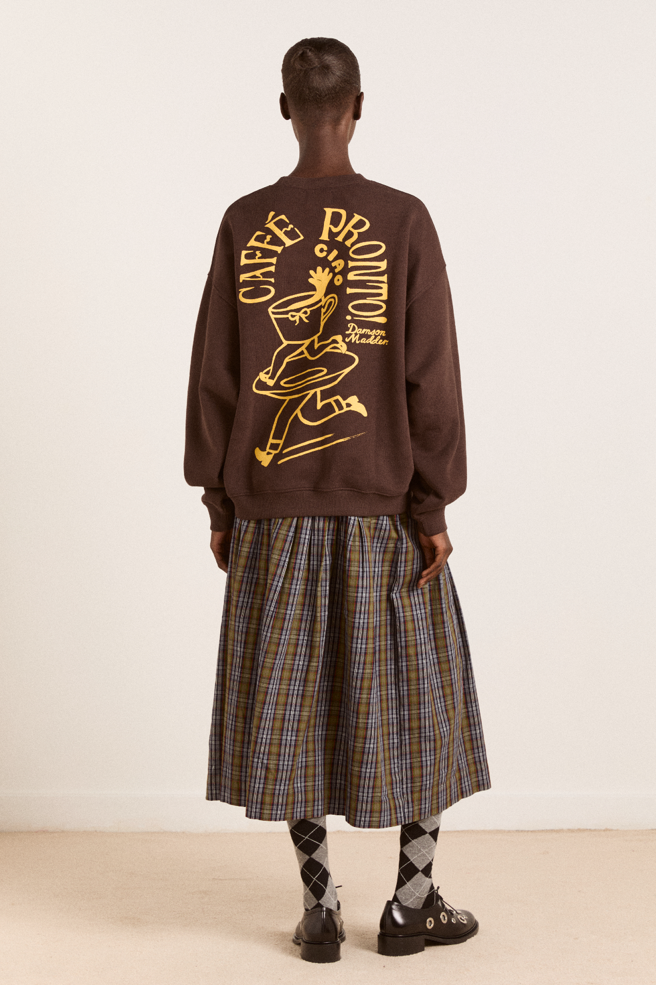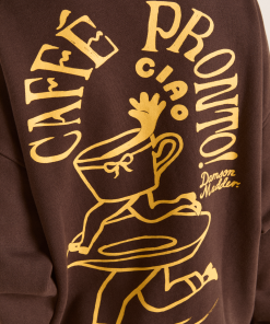 Hand drawn by our creative director, the well-loved ‘cafe pronto’ graphic is back, printed on a comfortable, oversized sweatshirt and now in a rich chocolate hue. Dubbed the Ciao Cafe Sweatshirt, this premium, heavy-weight sweat offers the comfort of home with you wherever you go.