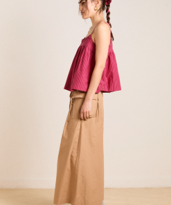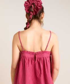 The perfect flowy summer cami, the Flynn in berry business stripe features a scoop neck with adjustable straps and a keyhole detail at the back. A swing shape provides a comfortable fit and breathability. Pair with our matching accessories.