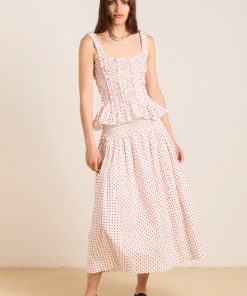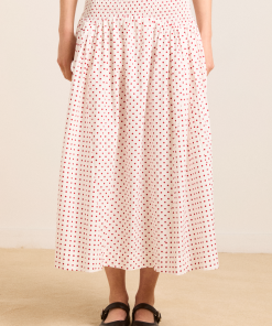 The Josie midi-length skirt combines effortless style with thoughtful details. Featuring a pleated waist panel for a flattering silhouette, it fastens discreetly with buttons on the left side, accompanied by a delicate tie detail for a refined finish. Crafted from 100% organic cotton, it offers both comfort and ease, making it a versatile addition to your wardrobe.