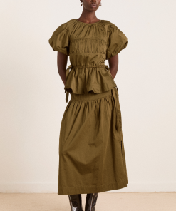 Effortlessly floaty and feminine, meet the Josie Midi Skirt in olive cotton satin. Crafted from 100% organic cotton, the Josie features a pleated waist panel. Easy wearing, the Josie can be dressed up or down. Pair with the matching Hadley Blouse for ultimate impact.