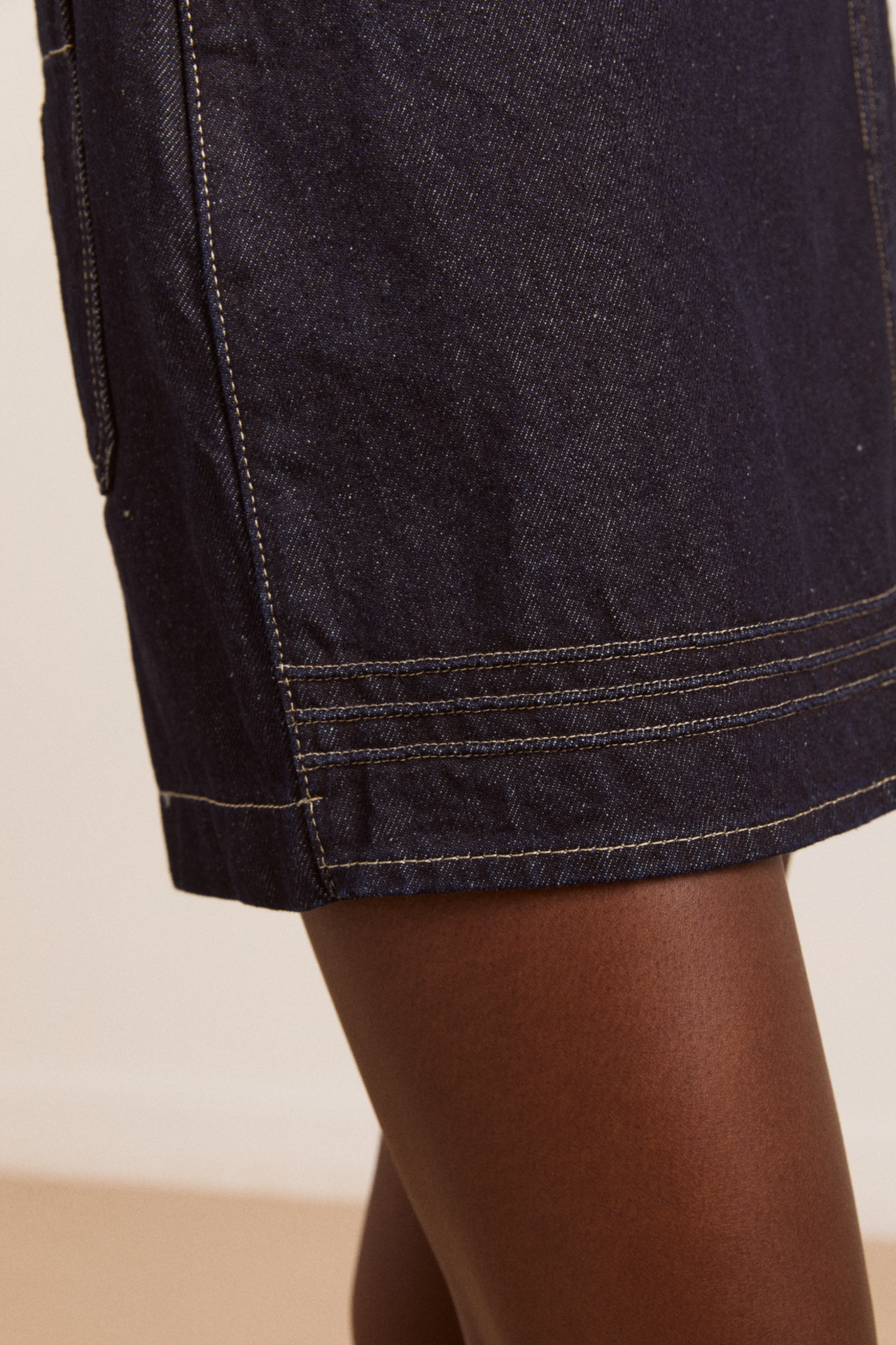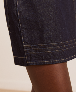 A fresh take on a classic style, the Rory Skirt in indigo denim offers a front wrap fit with pin tuck detailing. Crafted with a blend of organic and recycled cotton, this timeless piece features practical front and back pockets, as well as a signature woven DM patch on the back pocket.