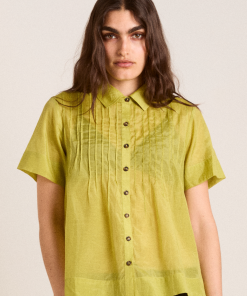 The perfect mix of tailored and floaty, meet the Sheer Wendy Blouse in golden lime. Complete with a sheer finish, button down front, and pin tuck detailing. Pair with our matching Glinda Ruffle Mini Skirt in golden lime for a statement, or with a basic to let the Wendy do all of the talking!