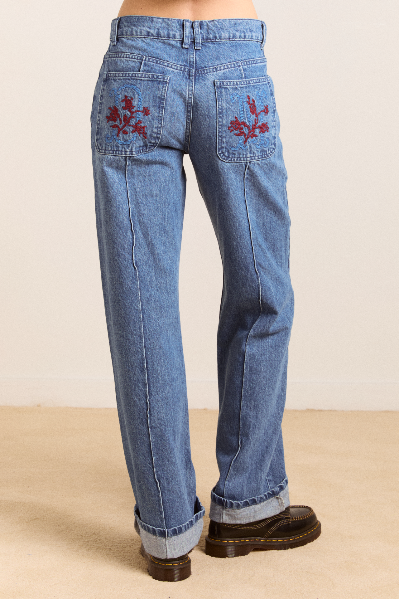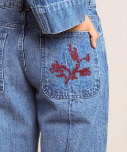 Meet the Sylvie Jeans in bayou wash. Featuring a turn up hem and cross stitch DM embroidery on the back pockets, they are an elevated take on a classic style that every denim lineup deserves. Pair with our matching Scarlett Rugby Shirt for an easy everyday uniform.