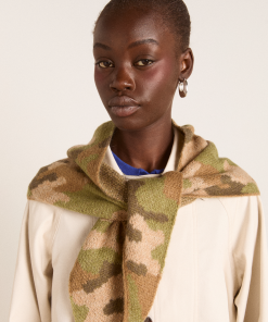 A versatile accessory in a camo knit design. Measuring 140cm x 42cm at its longest points, it can be styled as a headscarf or elegantly draped over the shoulders. Finished with crisp contrast white DM embroidery for a subtle signature detail.