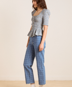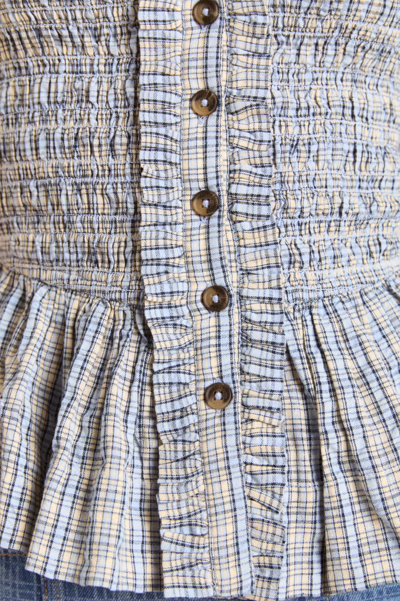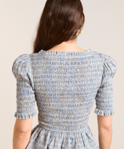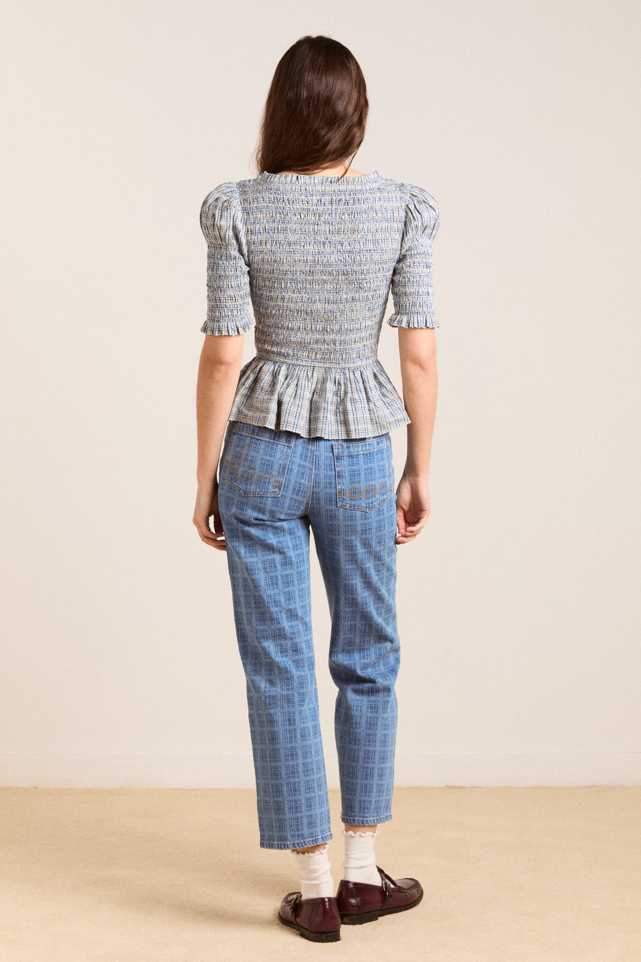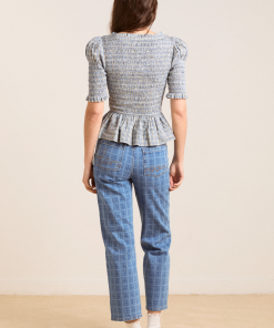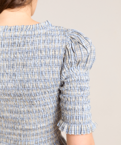 Damson Madder Women’s Mansi Shirred Blouse – Cloudy Check | Cloudy