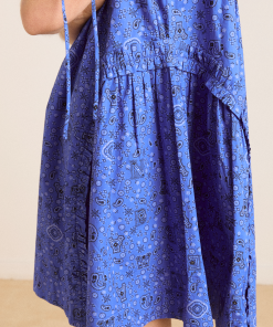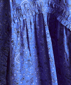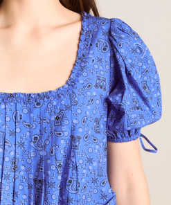 Elevate your summer style with the Meri Mini Dress in blue paisley. Featuring puffed sleeves, a square neckline and ruffle detailing, it is a playful mix of vintage and modern flair. Pair with our matching bandana or scrunchie.
