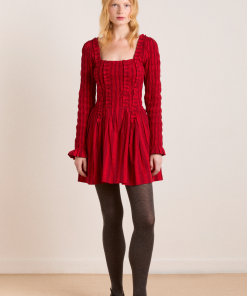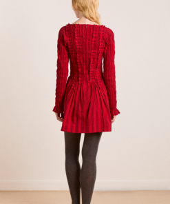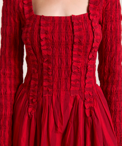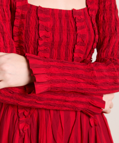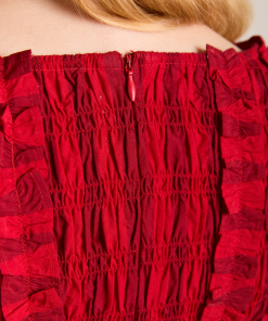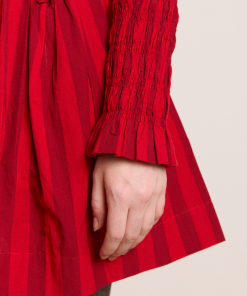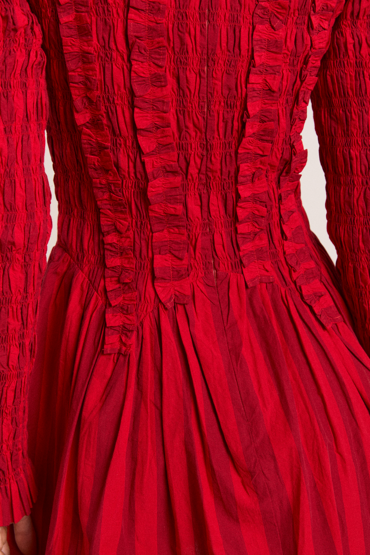 Flirty and fun, the Raphaela Mini Dress in red stripe is adorned with an all over stripe print and ruffle detailing. Featuring a square neck and shirred bodice for a flattering fit. Matching accessories available.