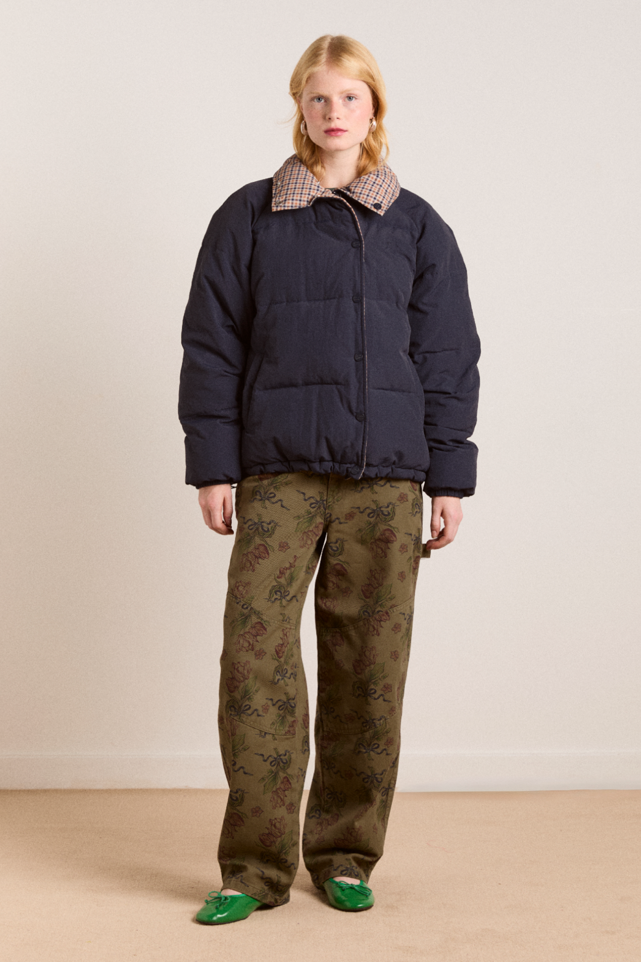 Meet the reversible Opal Puffer in navy, the ultimate 2-in-1 winter coat. This fully reversible style features navy on one side, and a custom DM check print on the other, with a contrast collar. Crafted from recycled materials, the Opal features pockets on both sides of the coat, as well as a zip front fastening with popper-down placket. Finished with our signature DM embroidery on the chest, the Opal will be the perfect companion to any winter outfit.