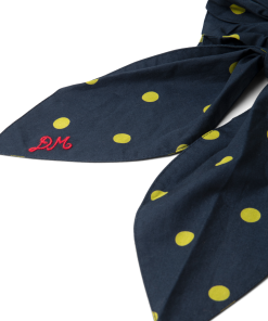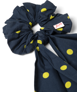 Meet our new Tie Detail Scrunchie in navy and olive spot. The perfect addition to any outfit, this scrunchie features an all over spot print and our signature DM embroidered logo in red. Pair with our matching Vela Tote Bag and Malinda Dress.
