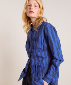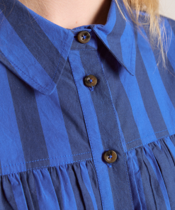 Fusing form and function, the Xenia Shirt in cobalt stripe is a standout piece. Crafted from 100% organic cotton, the Xenia features gathered panel detailing, with a button down front and all over cobalt stripe print.